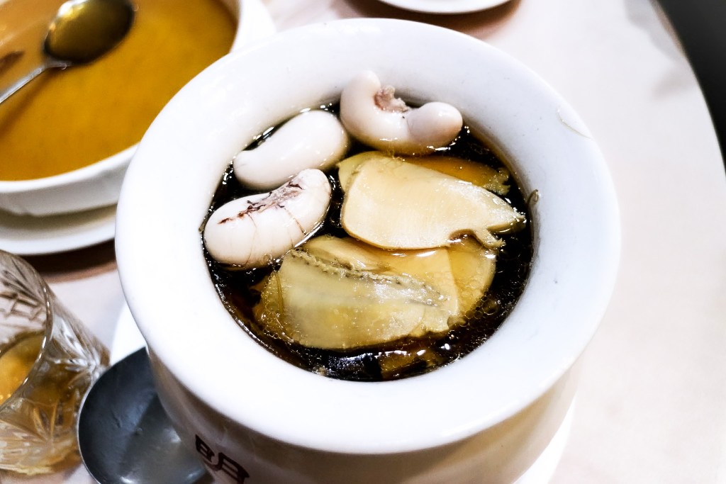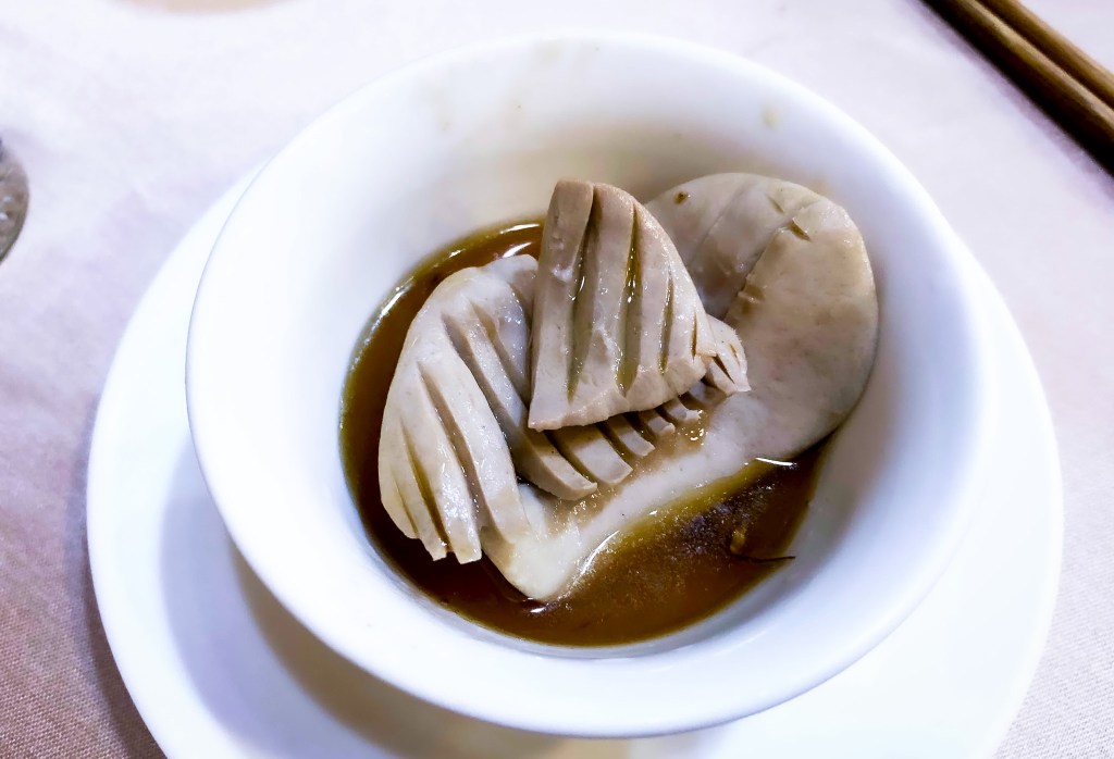 第二道是上菜的是「麻油腰只」。雖然這道顏值還滿匱乏的,但論滋味,個人覺得不錯,尤其這道料理的滋味是較輕柔而非厚重。因此無論是腰子還是湯汁,有著甘雅不有厚重薑味。