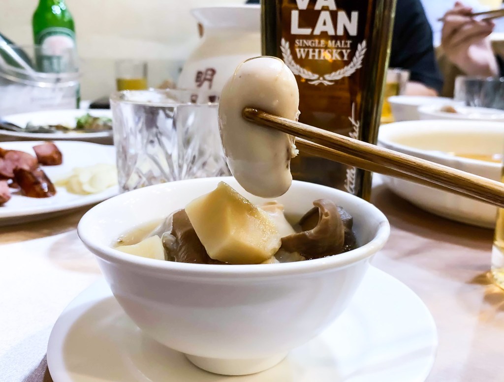 搭配威士忌,我覺得沒任何問題,臺菜搭威士忌總是美好,把甘甜味與粗澀嗆勁均衡了,而且再喝口湯,亦可解解暈眩。