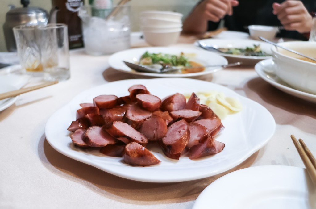 因此我想臺啤一定是幫手,因為夠生。此時,喝杯金牌啤酒後,再吃一塊鮪魚香腸感受一下,確實在尾韻的鮪魚鮮味才會略顯。