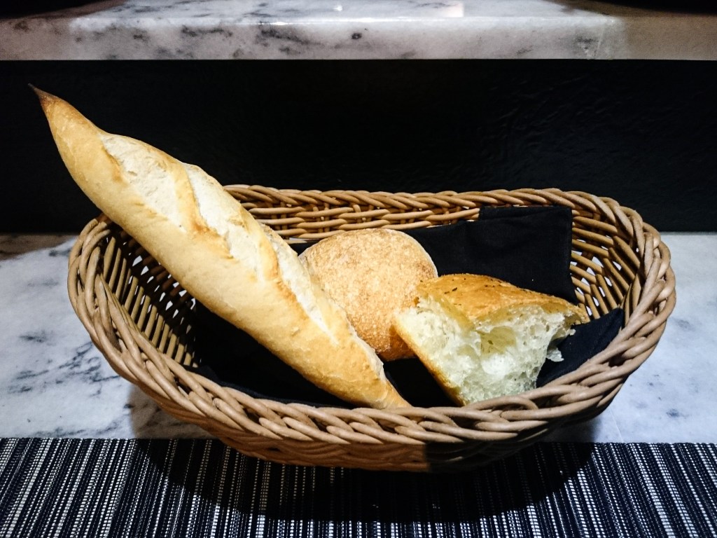好的,一切就緒後,第一樣上桌的是Bread「麵包籃」。我很喜歡幾間臺灣知名餐廳的麵包,Angelo的麵包同樣精彩美味,麵包籃裡有拖鞋麵包、棍子還有佛卡夏,此外搭上油醋與橄欖油,更是很開味可口。