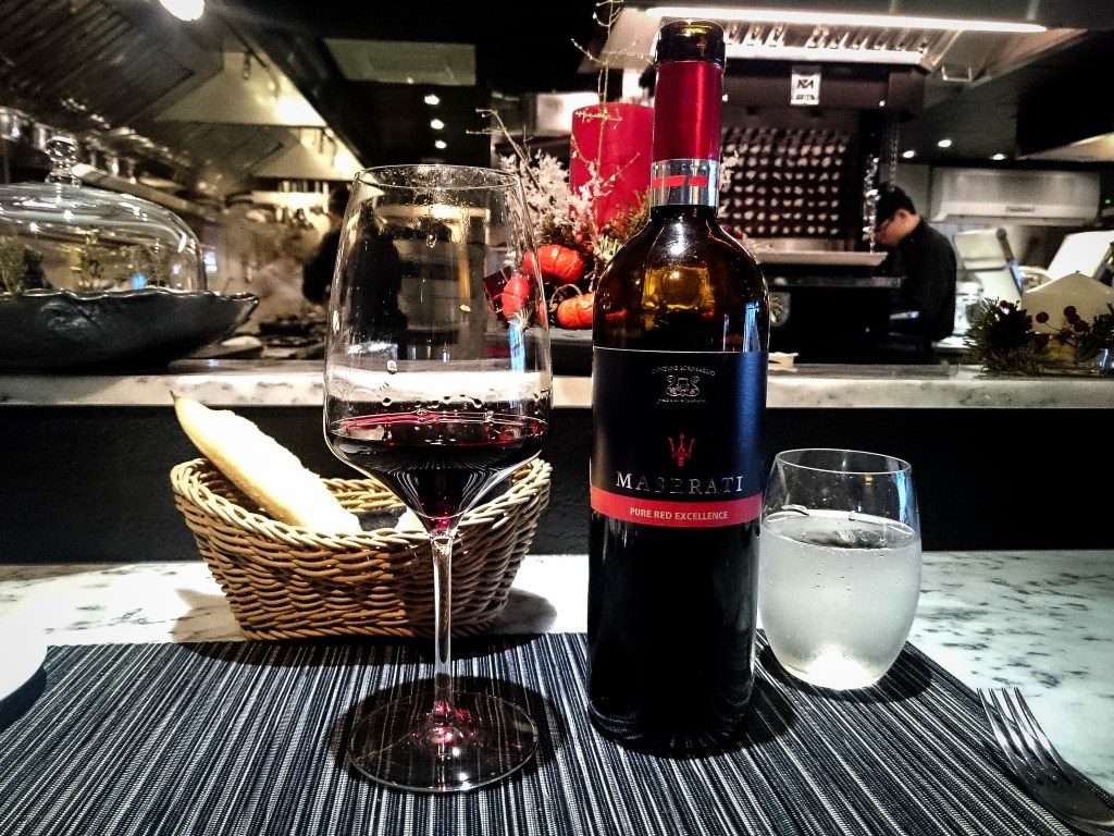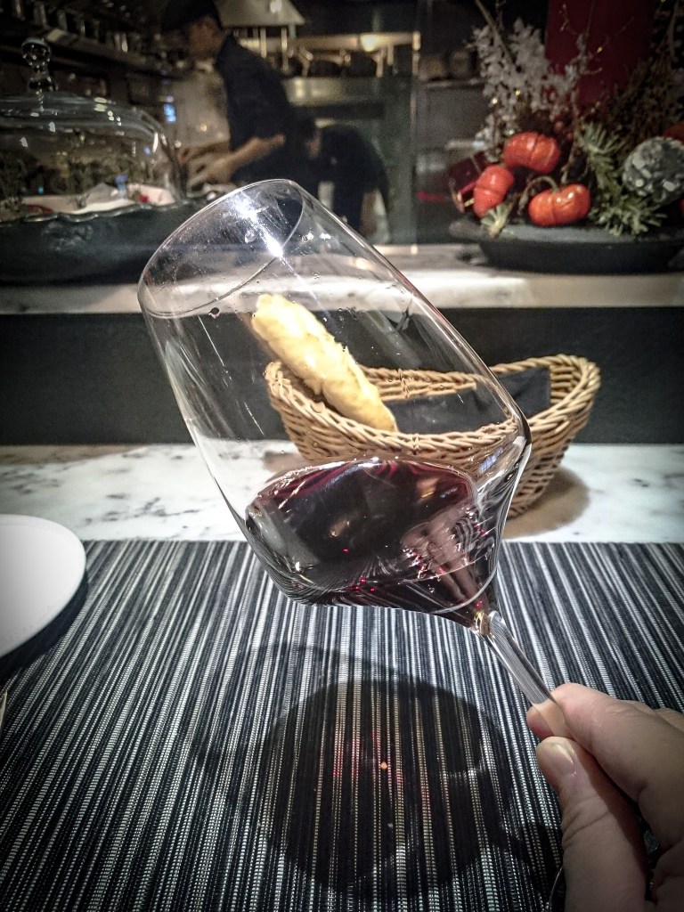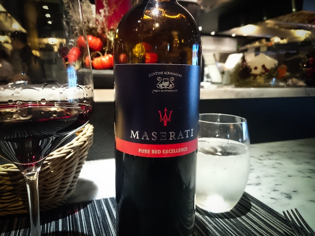 飲下…這款酒有著迷人的特質,雖然有barbera的果莓香,卻隨著佳餚而逐漸改變口感以及香氣,具體的說如紅焦糖、黑醋栗、胡椒、海鹽,還有莓果等重口味衝擊,但不會封閉不顯特色,反倒是酒體十足飽滿…讓我略感意外,確實像瑪莎拉蒂跑車一樣的實力。