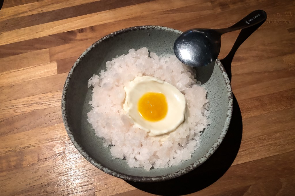 很多顆切半的孢子甘藍,搭配著胡麻醬、海苔,吃下時可快速感受到海苔與胡麻味道搶先,而與脆涼的孢子甘藍涼爽佐在一起吃,竟然還滿好吃的。