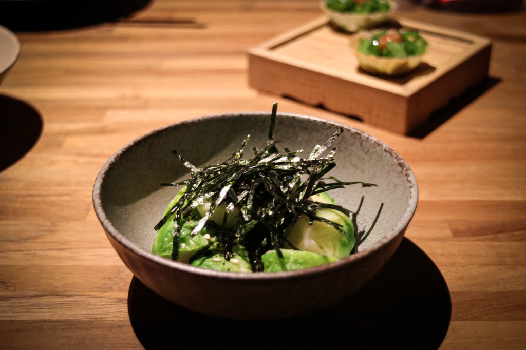 接著再來嚐試一下涼食「孢子甘藍/胡麻醬/海苔」。
