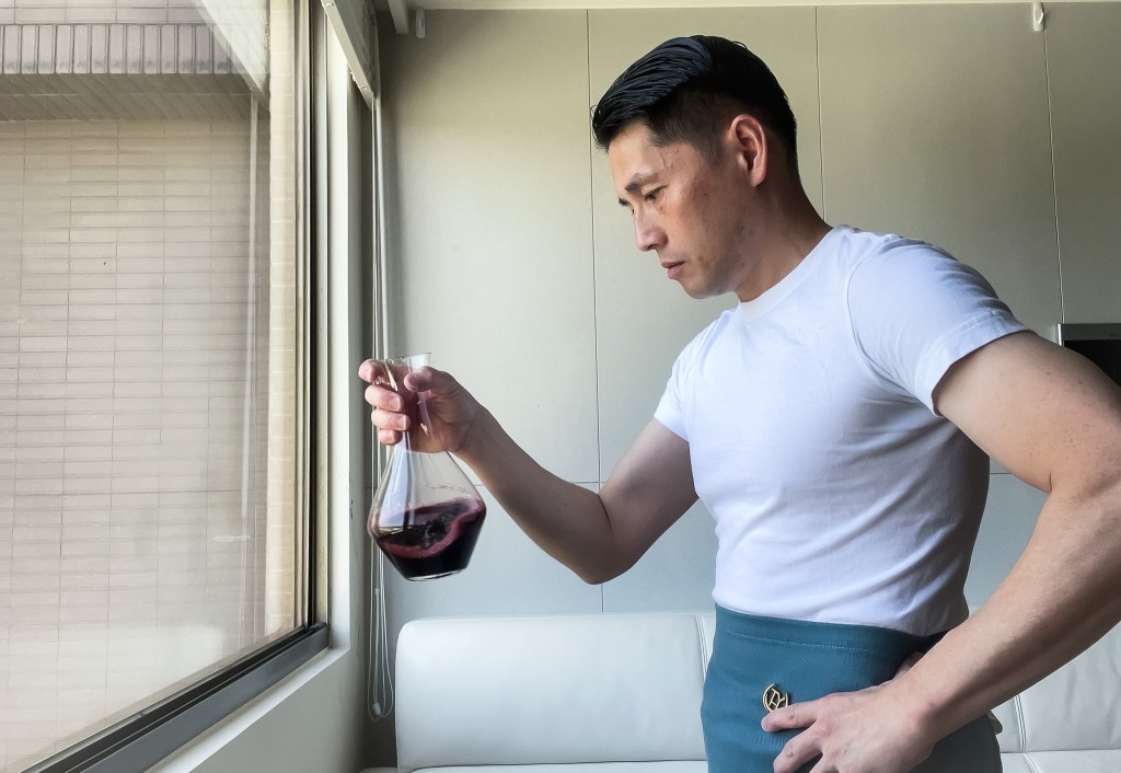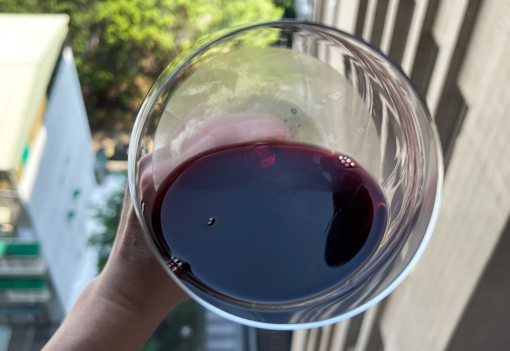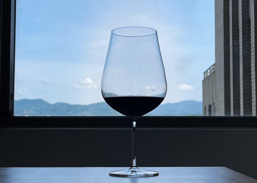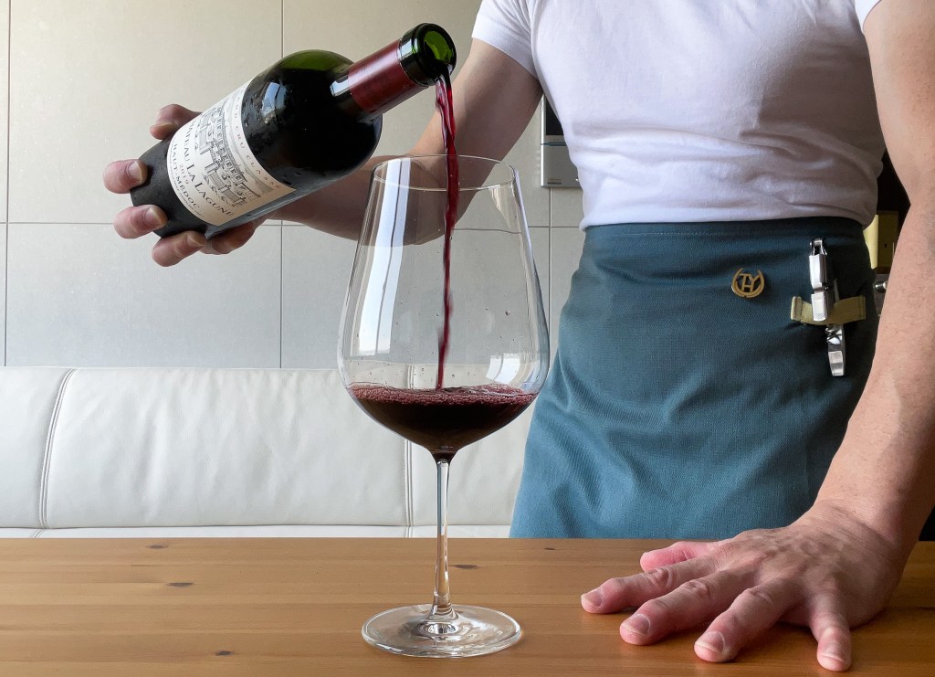 好的,時間來到1600時經過兩小時後,我將醒酒瓶的葡萄酒注入波爾多杯子中,然後開始品味它吧。