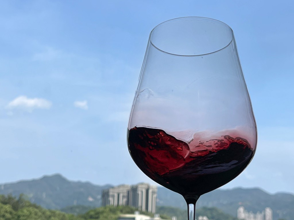 我搖晃酒杯,想要用搖晃喚醒酒液,酒液綻開色澤宛若寶石,非常美麗;同時酒腿規律的、光澤的滑落,集中於酒液之中,表現平靜,感覺是悠然而舒服的畫面。