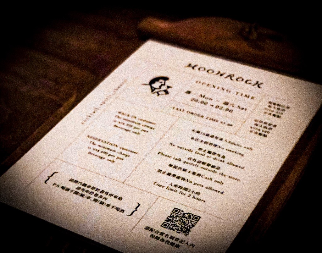 進入酒吧時,恰好遇到調酒師阿廖,聊了一下才意外發現,原來MOONROCK是他的作品。因此我回頭想想,由於因為疫情關係,有多久沒關心酒吧的世界。不過,總算進來了,也能合理解釋了計劃趕不上變化的另一種小幸運。