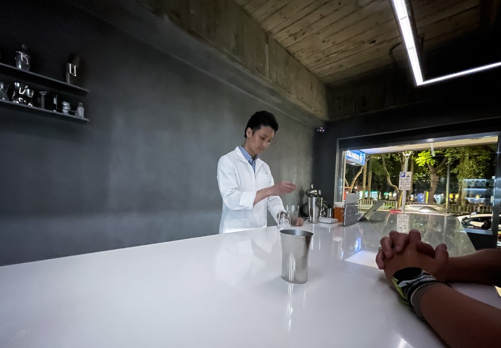 今天熊熊地想到酒吧LAB,除了安靜外,設計就是如地下實驗室一樣,簡單俐落,以水泥牆面以及一係白色吧檯。而調酒師也穿著的實驗室白色外衣,當然這裡的調酒也與多數酒吧表現的樣子不同。