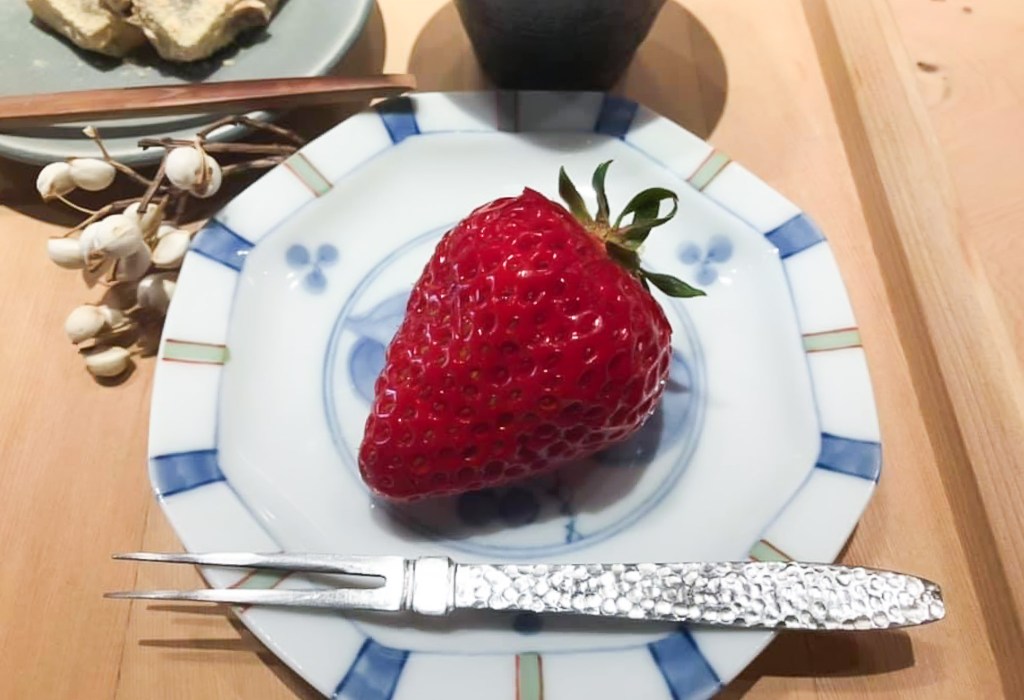 第二十道是甜品「蕨餅、靜岡草莓、玄米茶」。