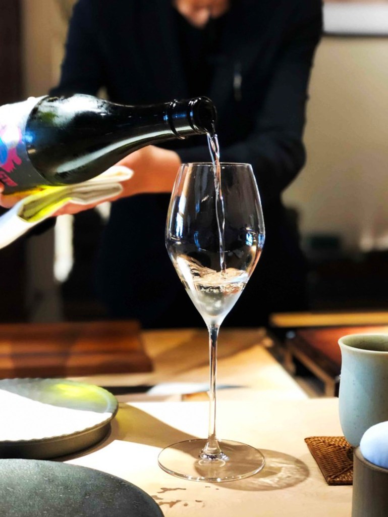 我請服務人員準備白酒杯品味就好,不過看著她們的準備過程,便相信這裡的侍酒服務是相當具水準的,餐廳選用Riedel香檳杯並為我注入了適當量的酒。好的,我就先品味一下這款清酒吧!