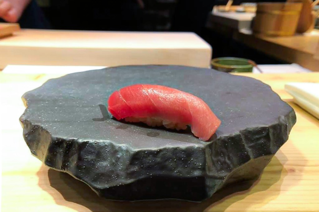今天的第五道料理即是第一貫握壽司「黑鮪魚中腹」。