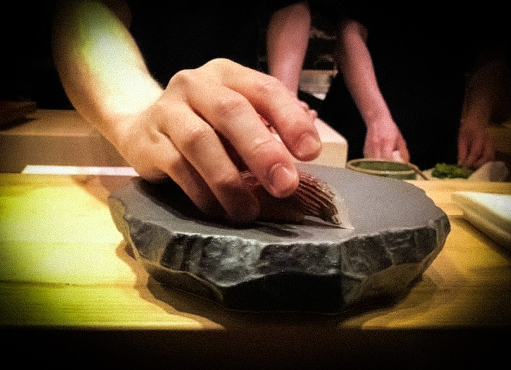 好的,很快就要進入用餐的情境,師傅準備了第一道前菜「鰤魚」。