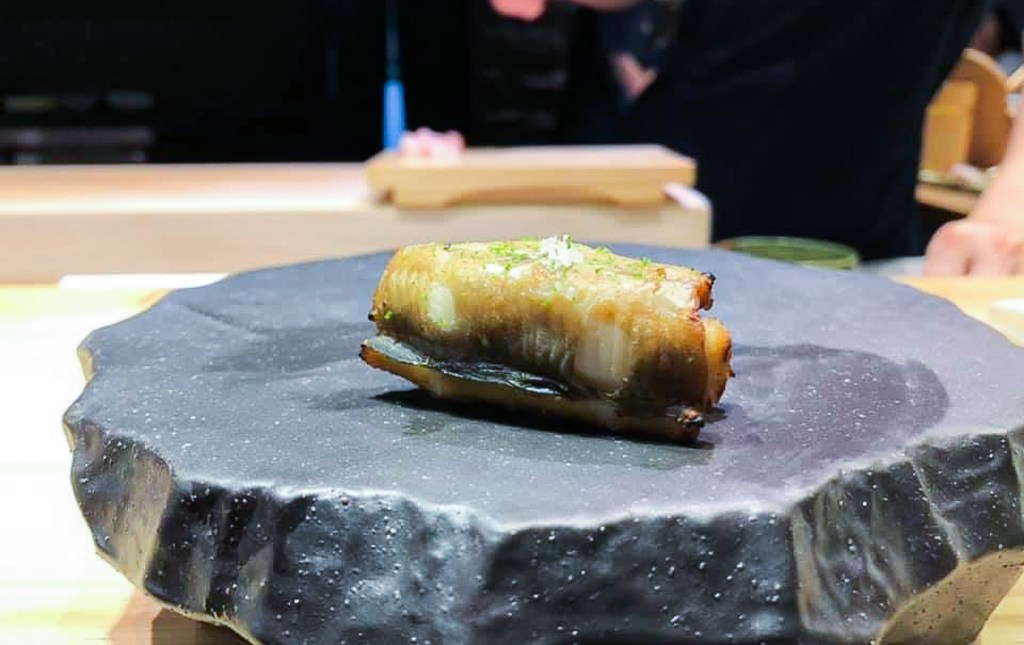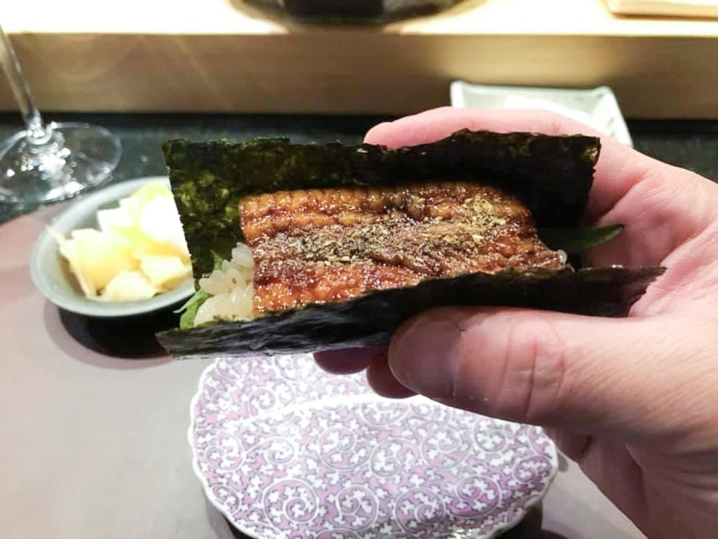 第八道料理是要用手接著的「鰻魚手卷」。