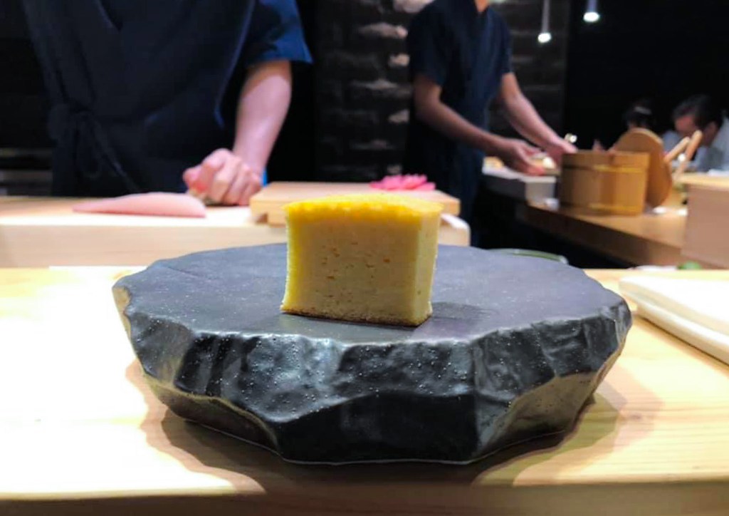 這貫也是魚漿製作的蛋糕玉子燒,入口香甜,但是屬於涼口的點心。搭配寫樂純米酒,甘甜香口,也相當合適的搭配。