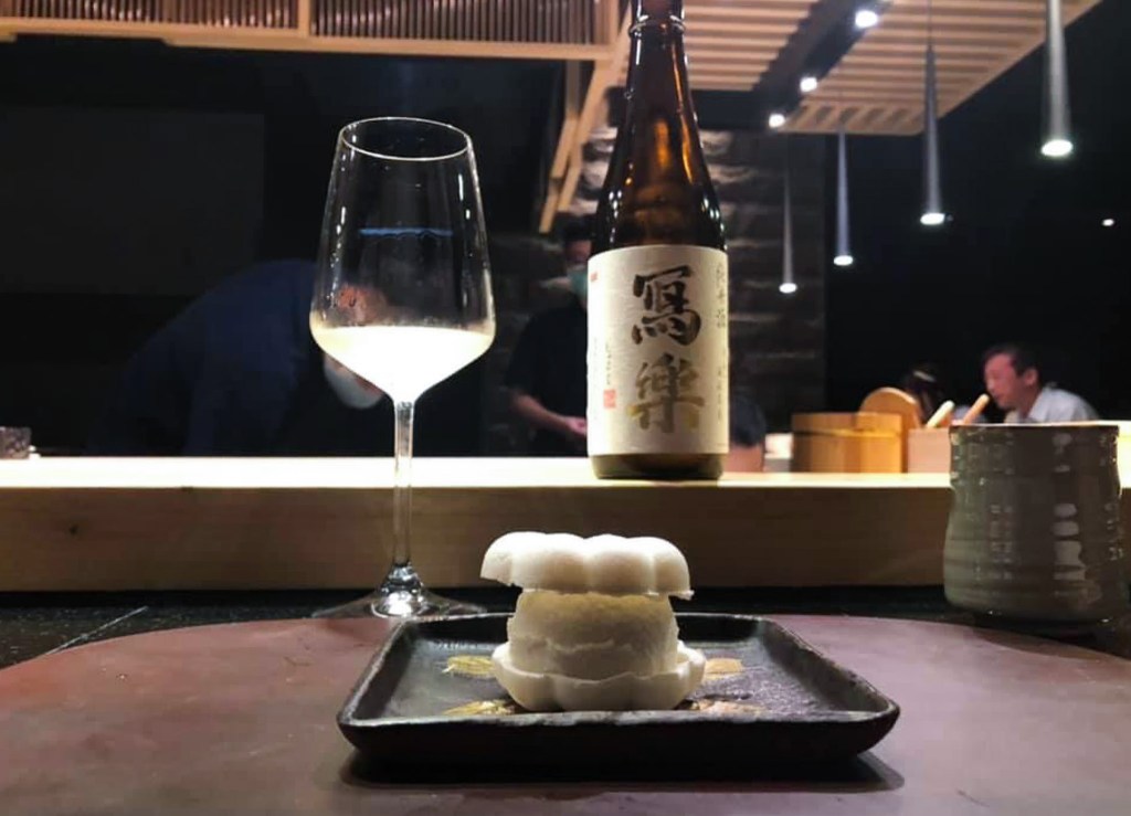 這道料理儘管微薄一片,但經過烤後脆香焦美,入口鮮美焦脆,而且帶有美麗的烤魚味,細緻理想。搭配寫樂,真的日本酒搭日本風格食物,辛香可口,焦香味甜在後,再帶一點酒精感。