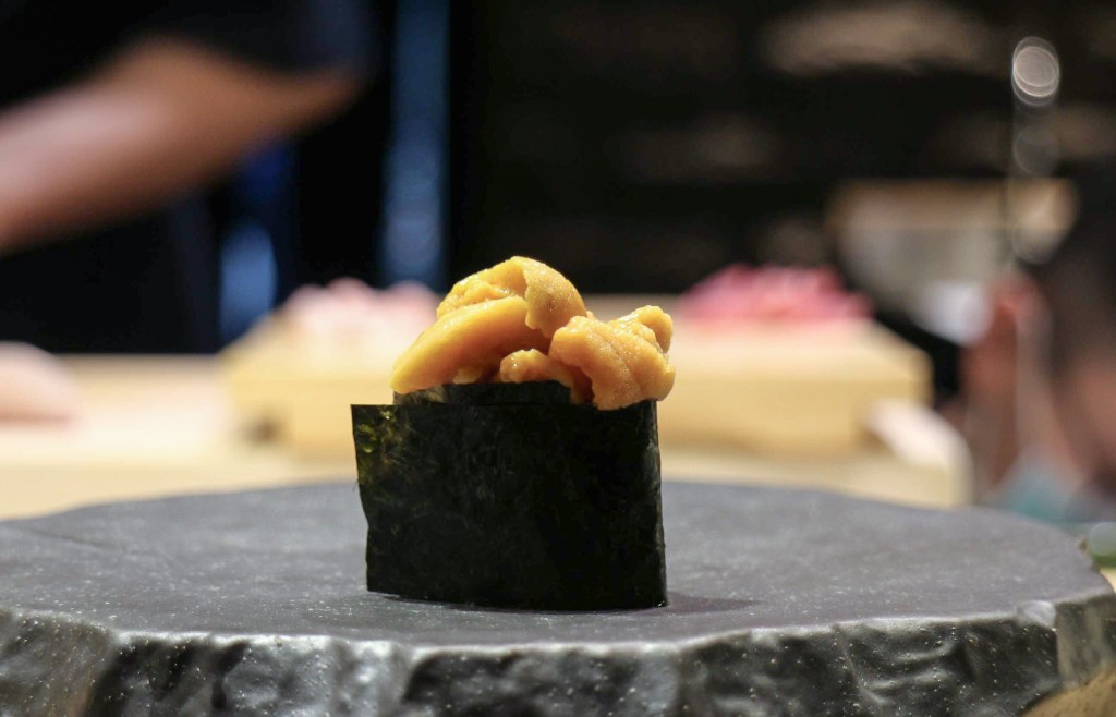 第十三道也是今天第七貫握壽司是掀起最後高潮「赤海膽軍艦」。