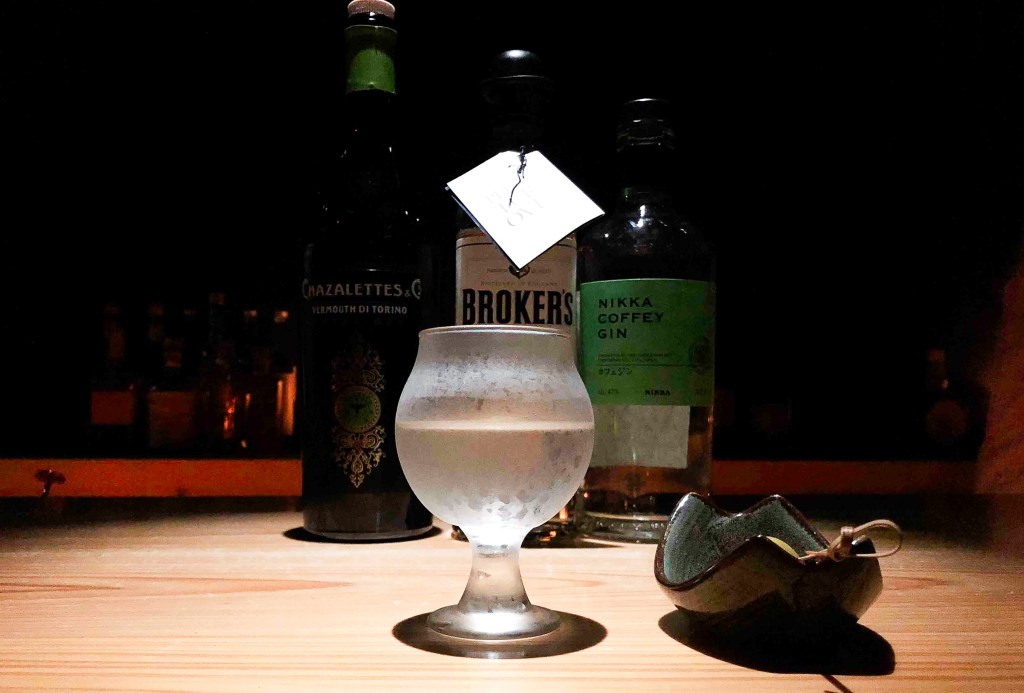 調酒師以Broker’s gin、Nikka Coffey gin等兩款琴酒,並以Chazalettes Vermouth調製,經過Stir後注入了小而雅緻的品酒杯中並搭配醃漬橄欖。