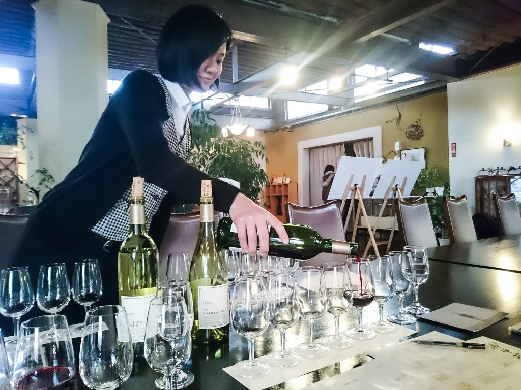 而我再次抱著疑惑問島田小姐,請問你胸前的葡萄標章代表的意思也是侍酒師嗎?還是….?島田笑著回答,我還不是侍酒師,這個徽章是代表經過酒莊的認證考試,可以作為一位解說員的意思。我又問,那麼也是要背一堆理論且還要矇眼盲測?島田小姐說,基本辨識葡萄酒的能力要有,也就是可以喝出是什麼品種,在認證的過程中是要矇瓶測試的。我發出驚嘆…這樣已經很厲害了。