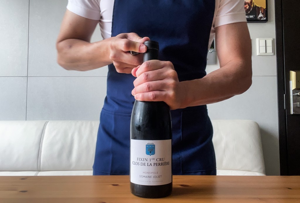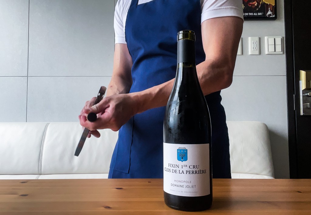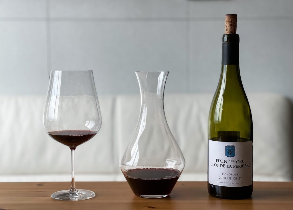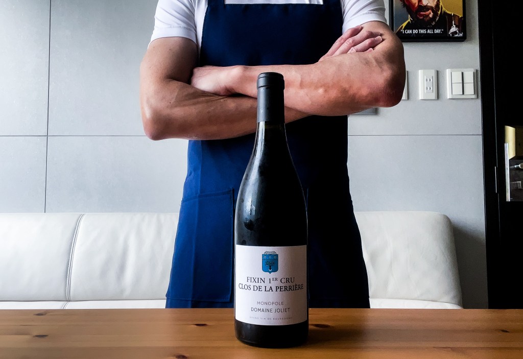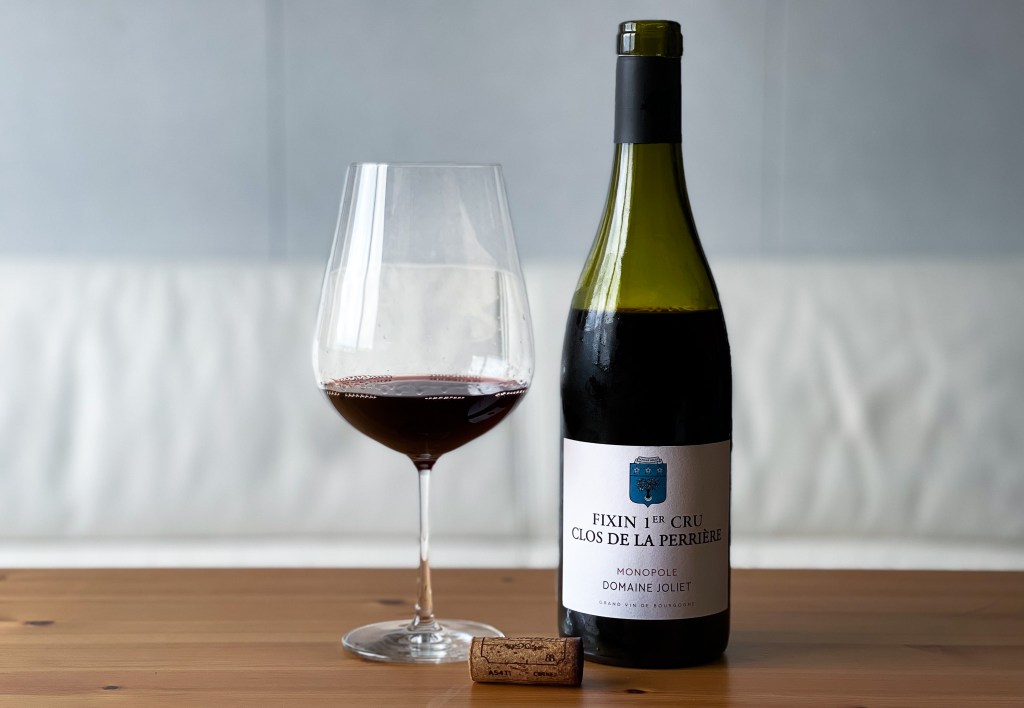 Ok,由於接下來的假日要留值而且要面對颱風所帶來的應變,所以我下午在運動過後,避免因天氣不穩定而淋雨,選擇回到家中。當然,就會品味葡萄酒,今天拿出來的是Domaine Joliet Fixin 1er Cru Clos de La Perriere Monopole 2017。
