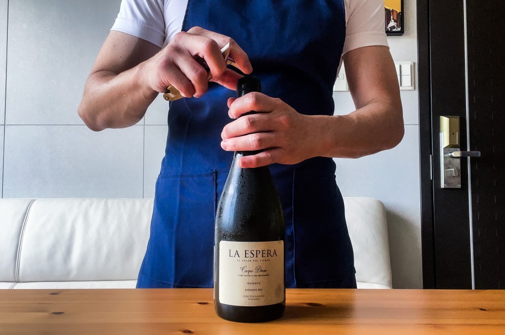 當然,這不是避重就輕的問題,而是如何取捨問題結構與了解整體狀況的感知。往往,擔任主管的有沒有這方面的預警能力是挺重要的,不然會惹來一些非必要的檢討!例如,鑰匙掉了就撿起來就好了,別把它想成會立刻被人撿走然後家門有被入侵的危險~~。好的,休假的第一件事就是運動,第二件事就是回家休息然後喝一款葡萄酒,今天品味的是來自阿根廷Mendoza產區的Riesling,La Espera Carpe Diem Reserva Riesling 2021。
