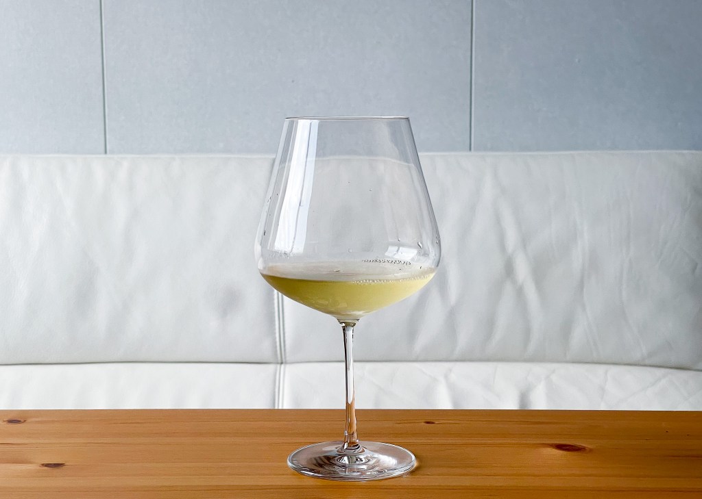飲下後,口感順暢清新,然後表現出輕盈的鹹澀酸爽感,有黃檸檬、檸檬汁液以及礦物味,而青澀水梨的酸味清楚。我再飲一口,仍然酸澀酸辛,但帶有一點蘋果氣味。
