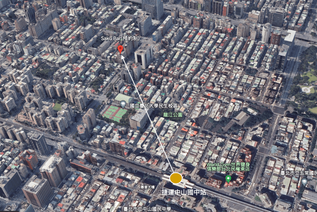 所以我當然要訂位前來,由於須前一日預約,所以今天下班後便來到酒吧。Saku Bar位在昔日年輕時期的中興法商(現為臺北大學城區部)的斜對面,精日經過,不如往日的熱鬧,這是因為隨著大學搬遷到了三峽而逐漸靜默的區塊。