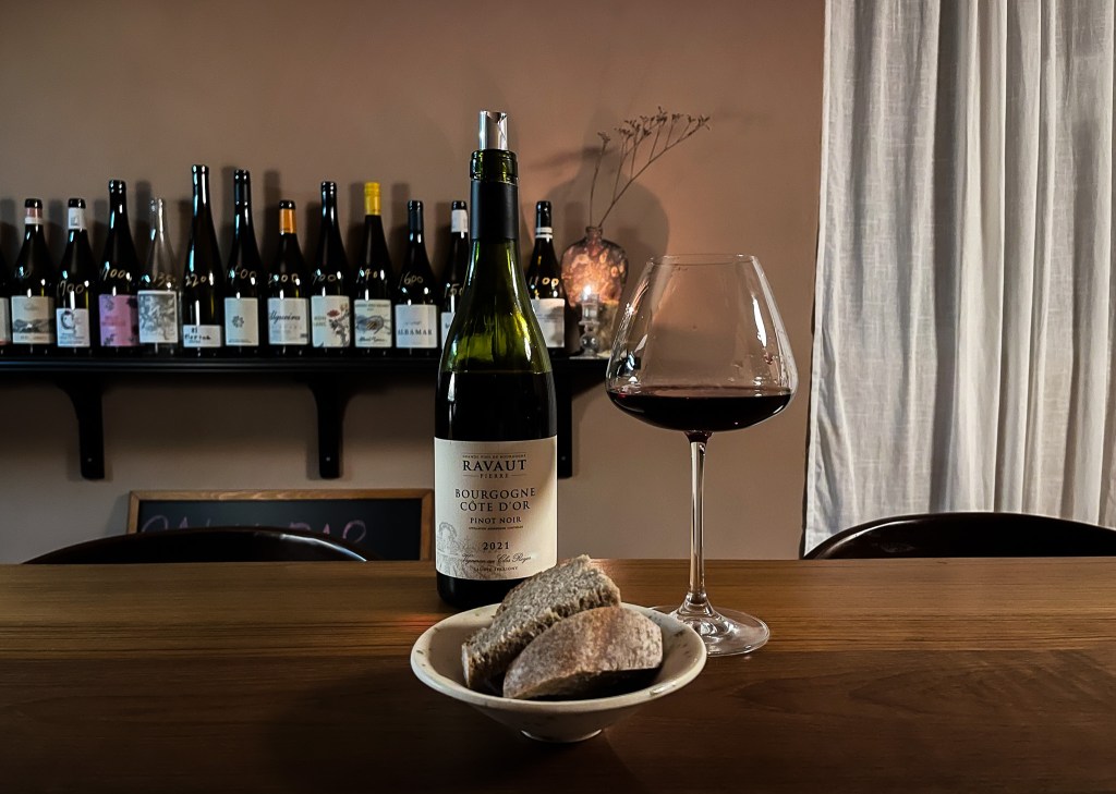 店裡放著輕鬆輕快的法國歌曲,且經過酒吧店主介紹葡萄酒後,我憑藉環境氛圍而選擇了一款布根地葡萄酒,而我挑選的是DOMAINE PIERRE RAVAUT COTE D’OR BOURGOGNE 2021(產地:France 產區:Bourgogne, Cote de Beaune 葡萄品種:100%Pinot Noir),接續可以獨自享受9月天下班後的自在愜意。