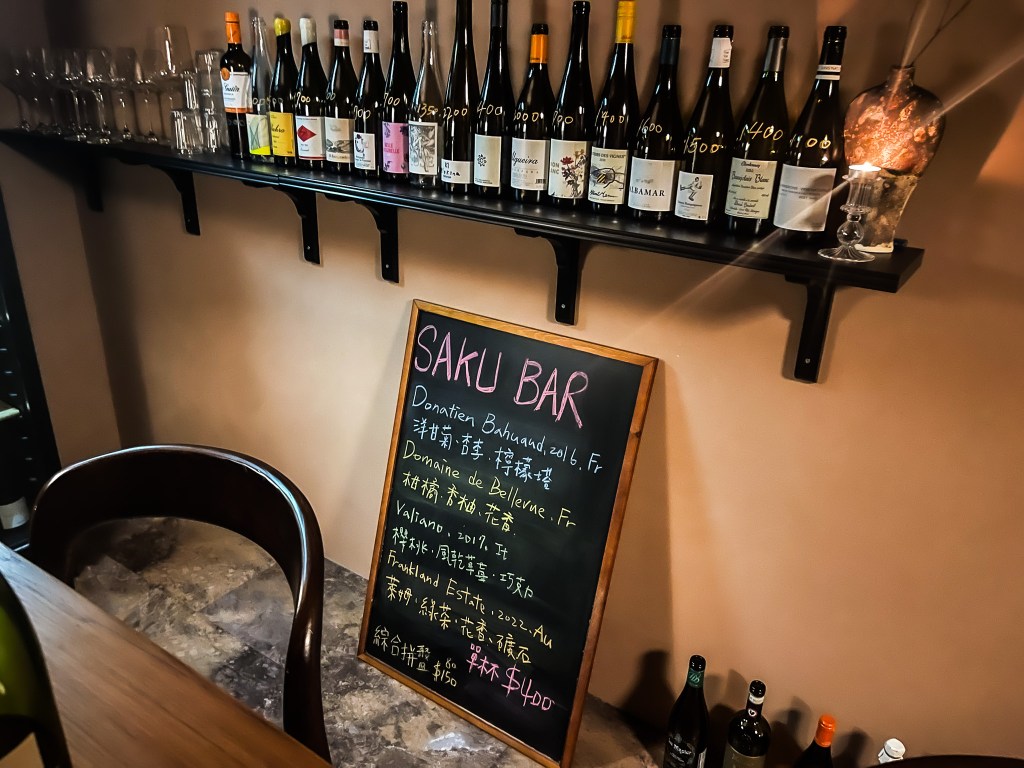 SAKU BAR是一間簡單並以葡萄酒為主的酒吧,它的葡萄酒不刻意標榜區別是自然酒還是各國葡萄酒的酒Bar,儘管是有限的傳統葡萄酒與自然派,店主們喜歡葡萄酒,對於選酒上必定有相當的準確度。