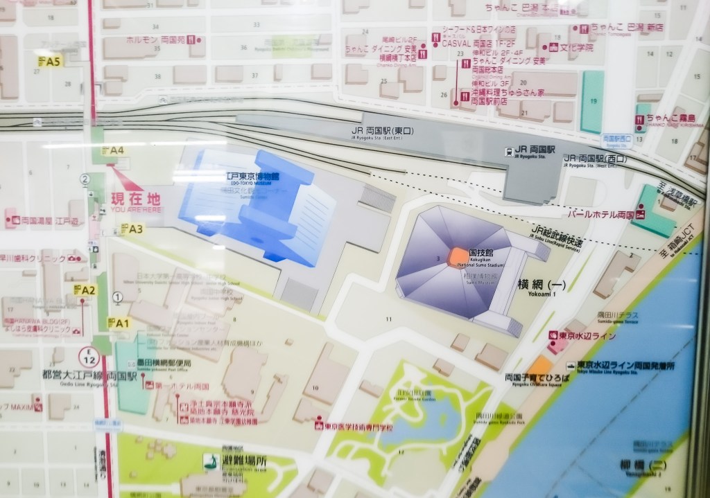 是的,原來兩國是日本大相撲的發源地,而且在出鐵道時就可以看見一座比較有規模的建築物,那是「兩國國技館」,也是相撲比賽的地方。