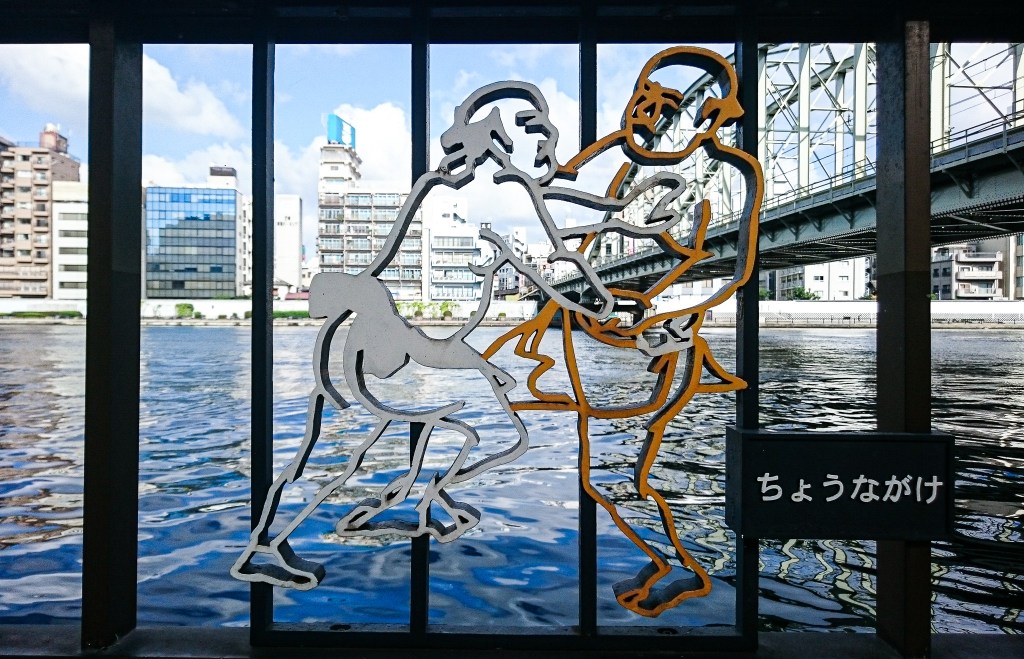 在這慢跑的路程上,所看見的護欄上都有些人形設計作品,邊跑邊看雖然有點分心,但都是旅途的印象,尤其這些作品乍看下都是相撲選手的圖樣,難道兩國這個地方與相撲有關係?