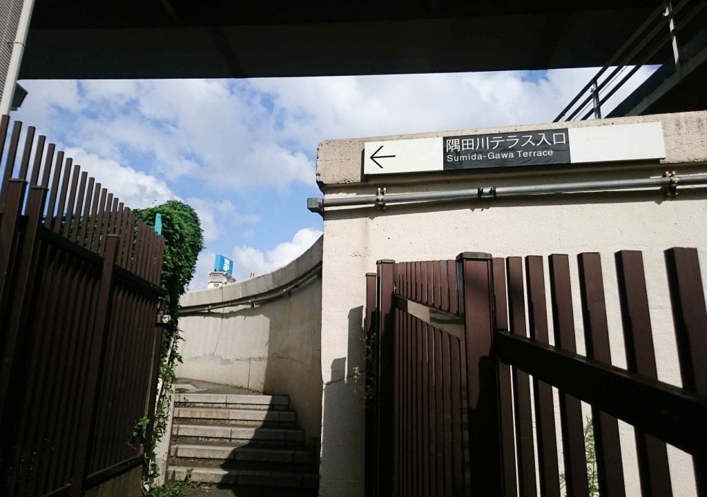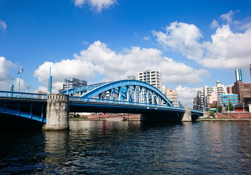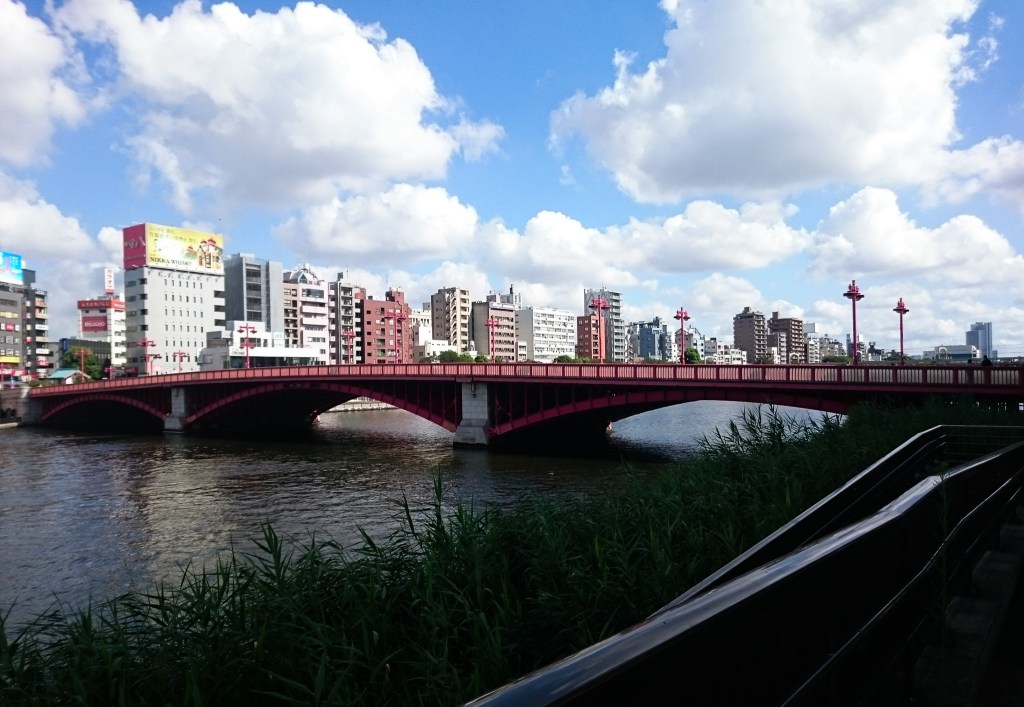 過了馬路後,我沒有過橋,反而是從吾妻橋下,繼續往「駒形橋」前進,這時候已經達到預定目標5公里了。接著,我繼續沿著隅田川一路往前行,同樣再經過「廄橋」也就是上回我就住在橋附近的Nui.Hostel。