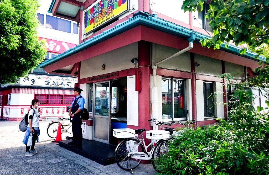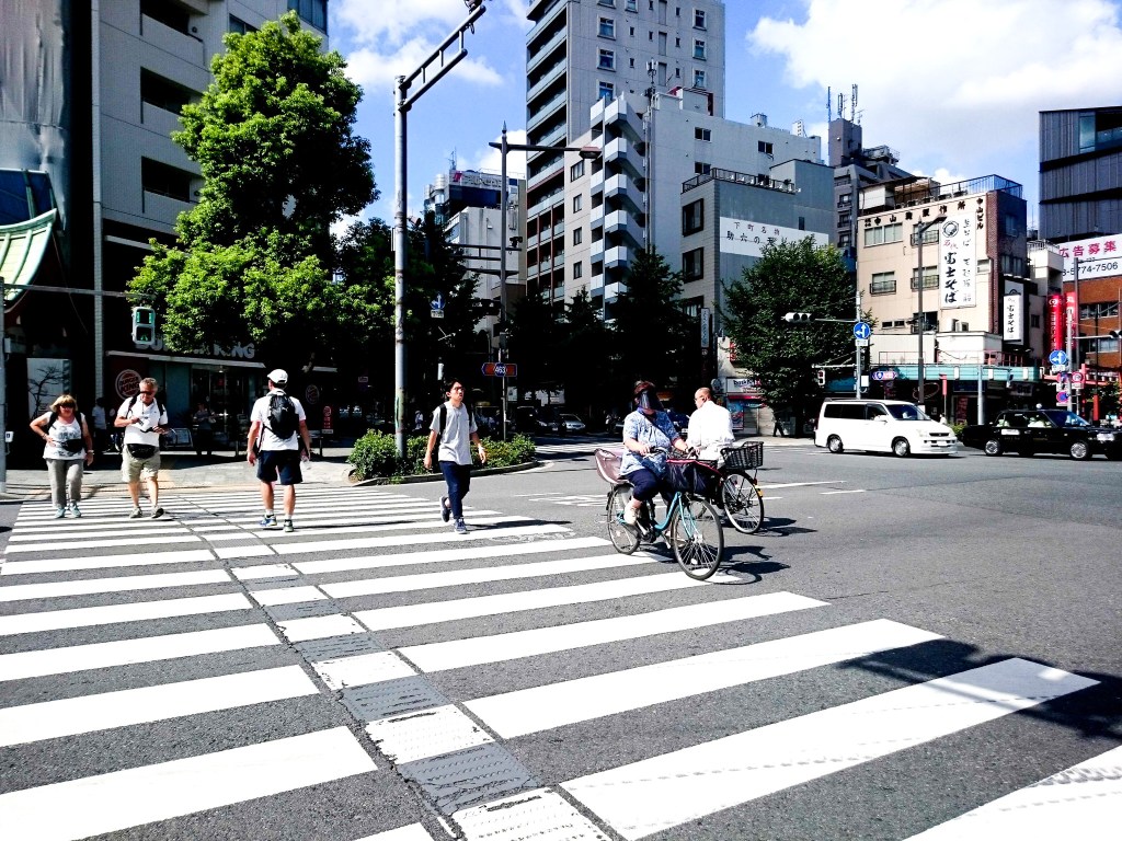 接著繼續向前跑,又在經過「吾妻橋」,不過還得稍等紅燈,而這裡有一座警察亭,我想來過的人必定知道,這時有人似乎向警察問路。