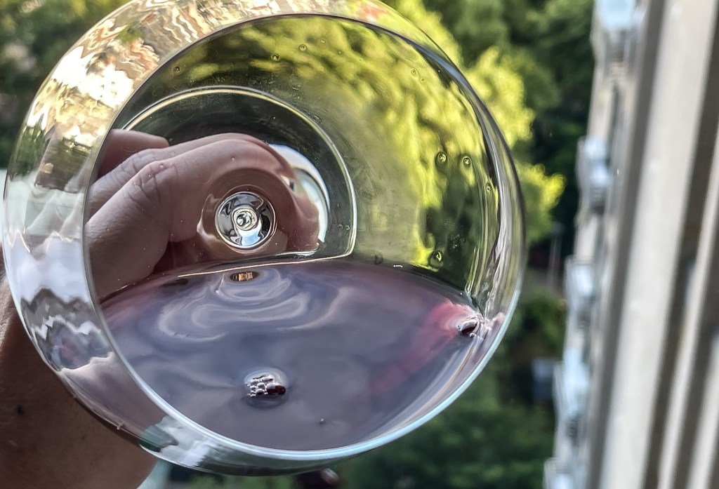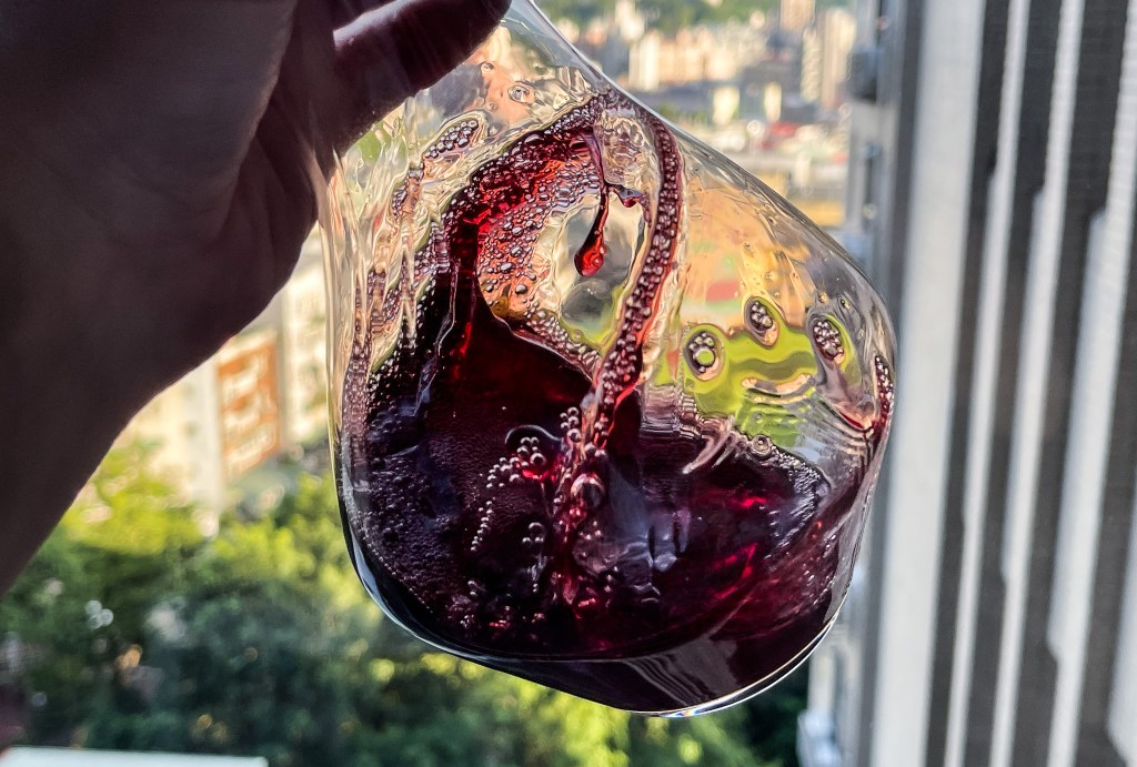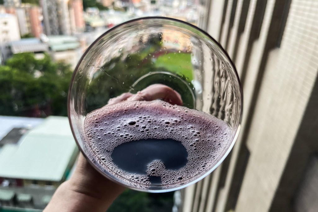 色調不變,但每每我想刻意葡萄酒撞擊而擠壓出的氣泡作為醒酒的依據,因為要讓二氧化碳從酒中擠壓出來,也就是要他還我果香味。