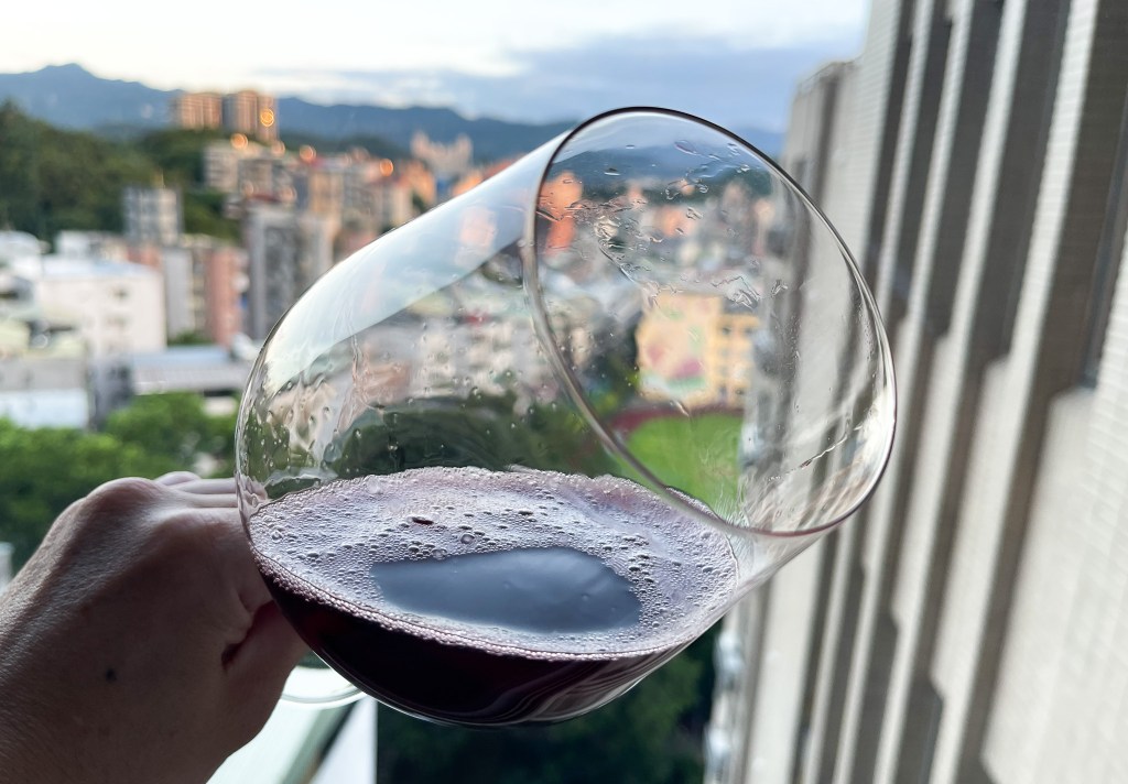我搖晃酒杯,色調高壓,倘若真的是紅寶石該多好,就是這麼美麗,酒腿緩緩而細緻俐落的滑下,酒面靜置平靜而美麗。
