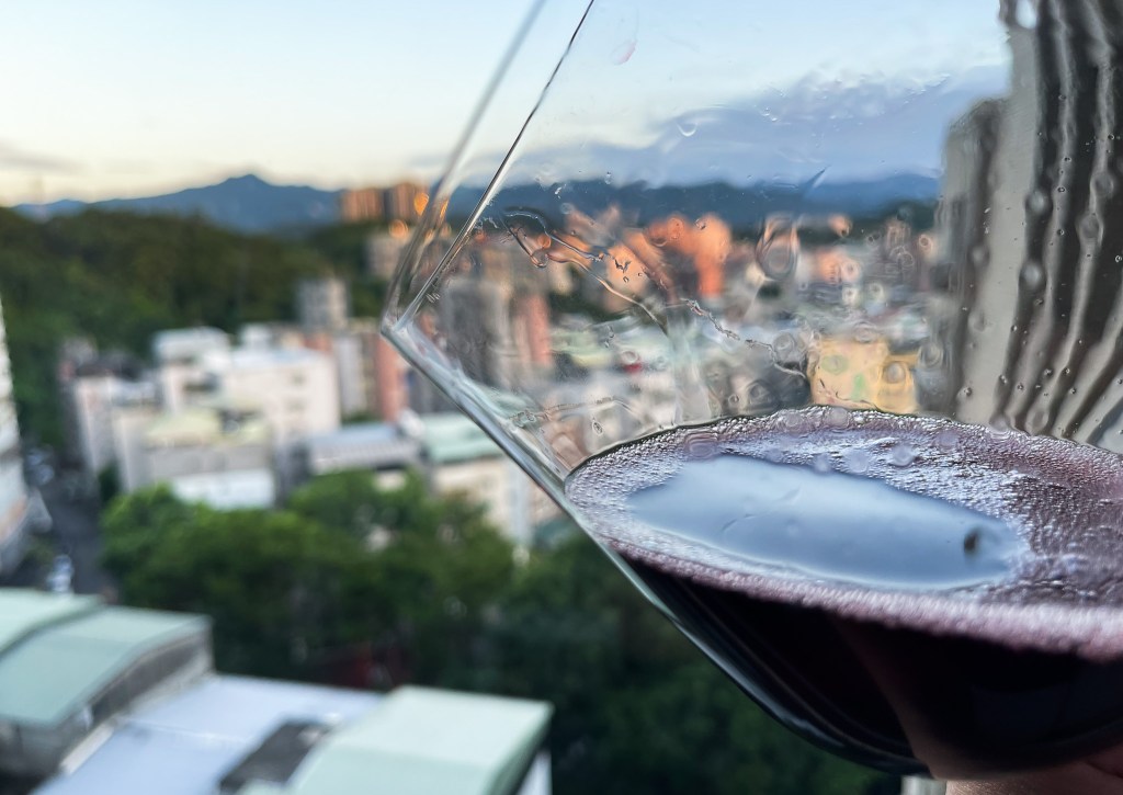 我盥洗後,換上衣服,取出葡萄酒,然後在用海馬刀開啟它,並取出葡萄酒杯,注入些許,接著就是我一連串的品味時光。