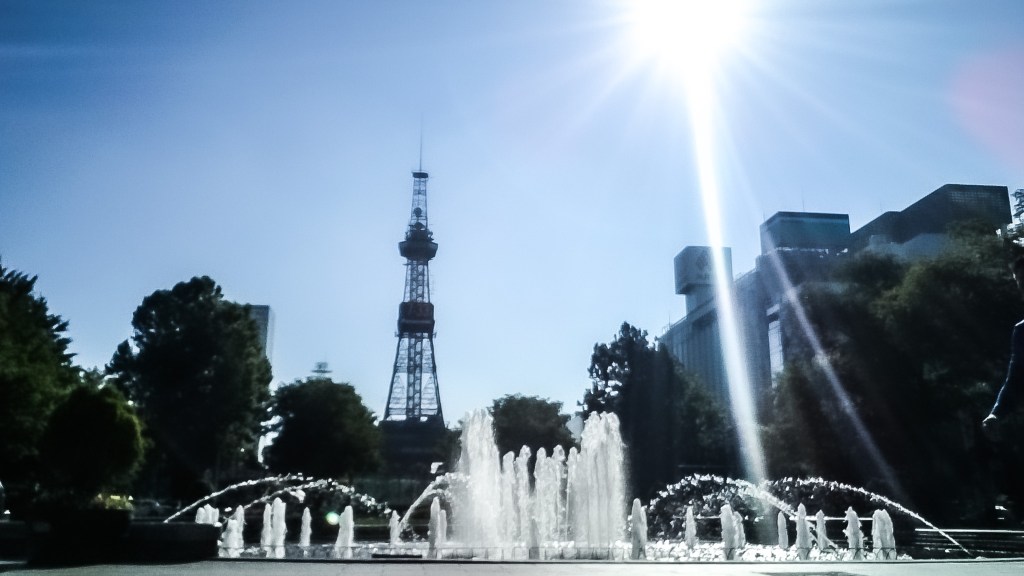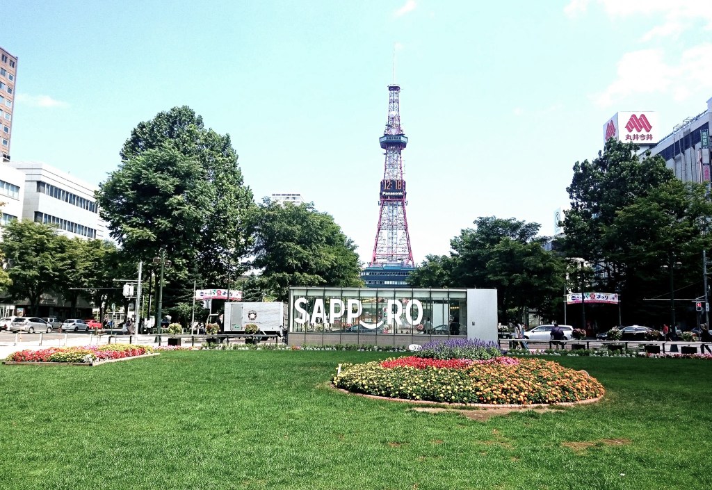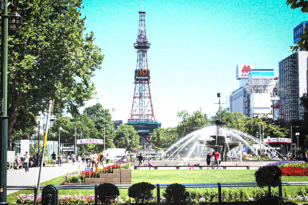 當過了大通後,即刻看見了著名的札幌景點「大通公園」,大通公園無時無刻都有人聚集在這,當然噴水池以及札幌電塔是知名的景點。也可以看見上班族坐在這思索。