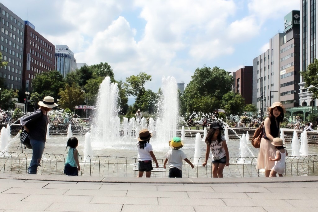 如果想要俯瞰札幌,你也可以選擇去做電塔的電梯至高處環頸俯視。在這裡,也會看見許多爸爸媽媽帶著小朋友來到噴水池戲水,當然這是夏天才會。