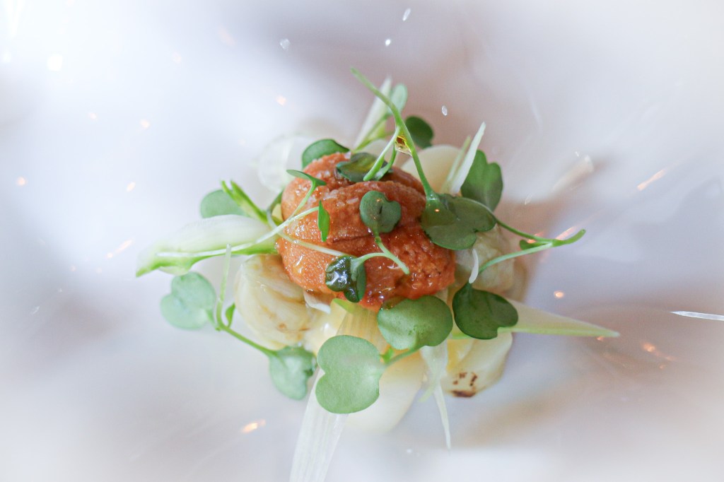 第二道是季節食材為主的「白蘆筍、海膽、荷蘭醬」(White Asparagus、Uni、Hollandaise)。