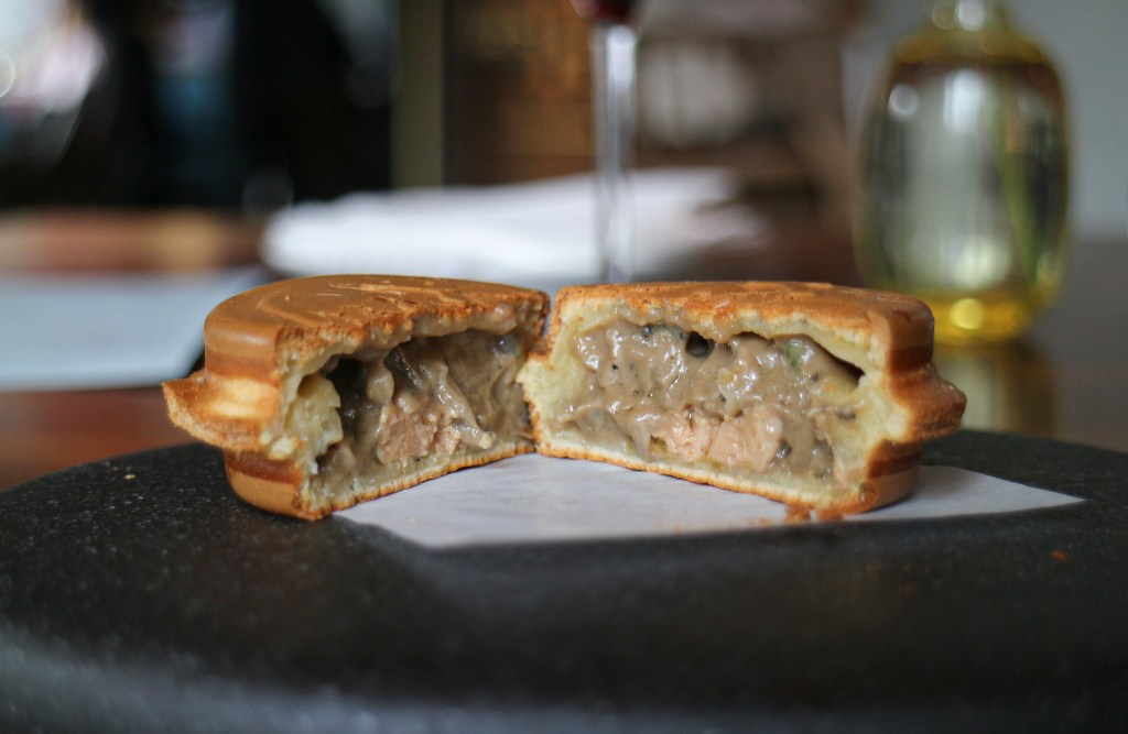 刀上有些微醬汁以及鴨肝,我光稍稍舔一下,真美味啊,這就是我要的松露鴨肝美味,兩者並行如臥龍鳳雛,一定要快速吃完,也不能咀嚼太久,因為車輪餅的外皮和口水浸漬久後就不理想。但這款餐車概念的點心真是美味,真好吃。
