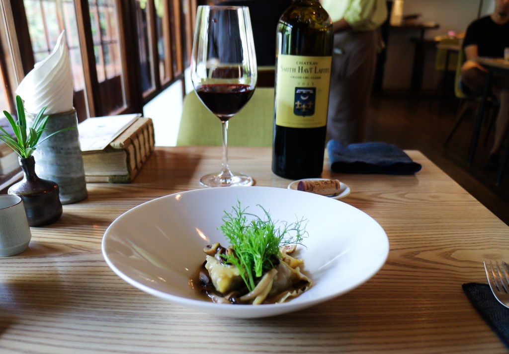 此外,配菜有日本蕪菁、抱子橄欖、洋蔥、蘑菇等,還有十分香甜的醬汁,這些配菜搭Chateav Smith Havt Lafitte一樣可口,但多出葡萄原味以及莓果酸香,好讚。