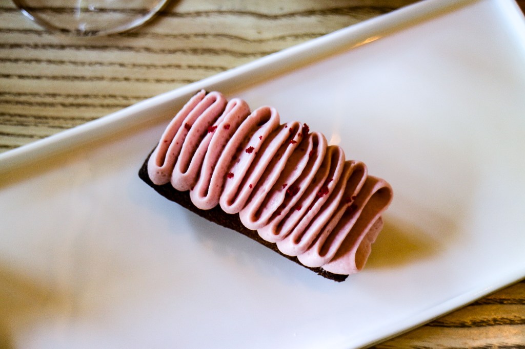 接著服務人員送上今日第道甜點「覆盆子費南雪」(Raspberry Financier)。