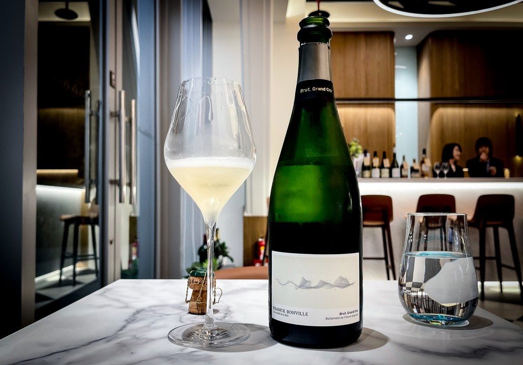 今天我挑選了一支香檳,當然香檳區是法國特定的產區,而這款是CHAMPAGNE FRANCK BONVILLE GRAND CRU BLANC DE BLANC NV(產地:Franc 產區:Champagne 葡萄品種:100% Chardonnay)。