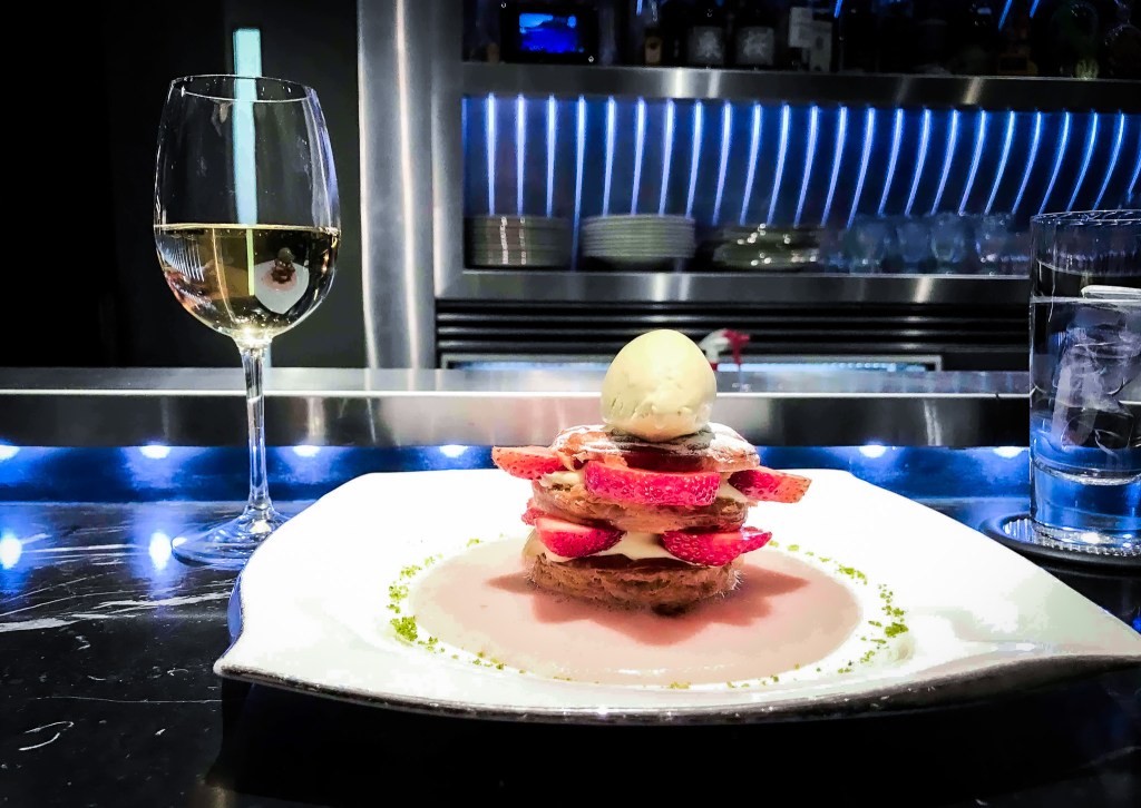 千層更麗優雅,一切即脆而不塌陷,入口即脆,不失我愛的香烤的燒香氣味,這道太正了。而且我點了杯Alsace Grand cru白葡萄酒搭配,這款微甜的白酒與草莓千層搭配這滋味真是美好。