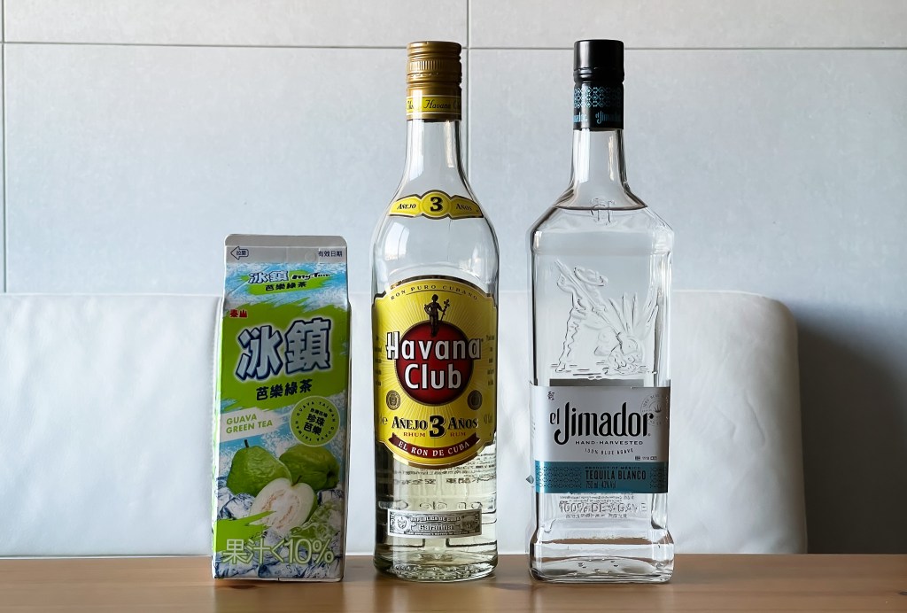 從小7買完綠茶,決定基地呢?我以中南美洲的蒸餾酒蘭姆以及伏特加,來搭配炎熱夏日的水果綠茶作為融合調配,這樣的想法應該很合理吧。