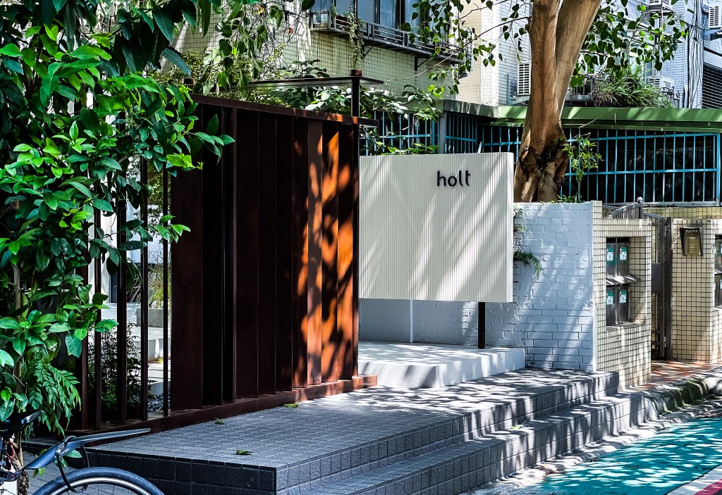 今天的天氣可謂明媚,尤其在已經熄燈的老西華飯店的後方。這裡既有富錦街特色的建築,也有綠色植物樹蔭,在陽光照耀下,顯得悠閒迷人,而來到的午間餐廳Holt就坐落在此地,經過重新整理後的餐廳門面,稍多了隱密感,但不失俐落大方。