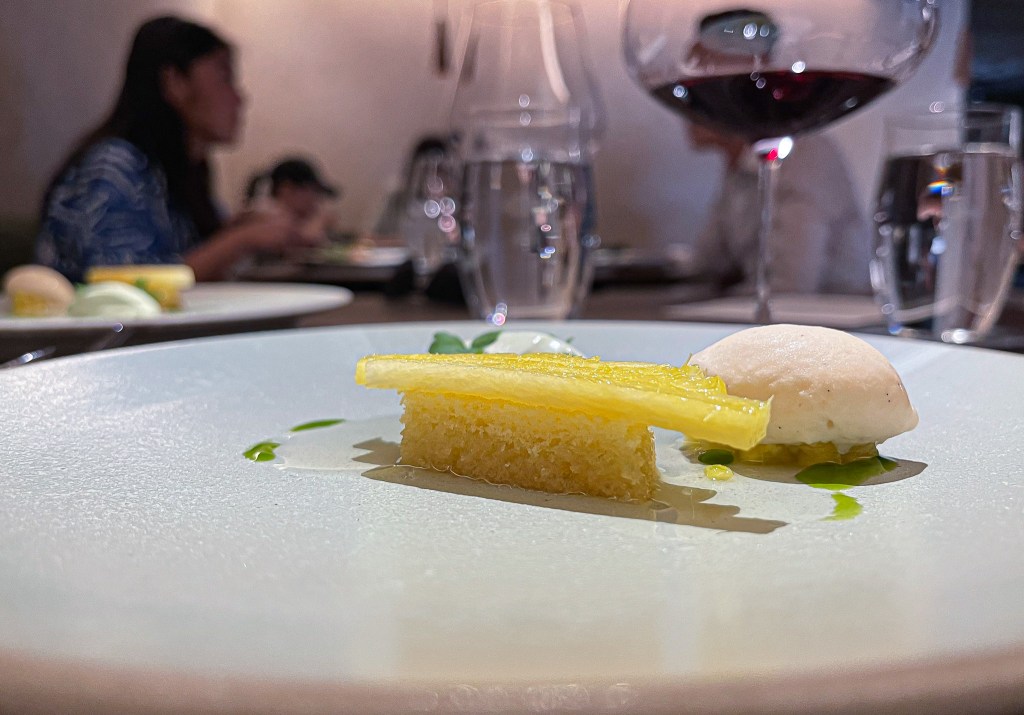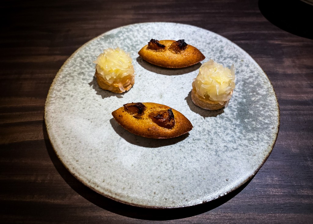最後上一盤搭配餐後茶品的PETIT FOURS分別有TEN YEAR AGED CHENPI FINANCIER以及POMELO & THYME DACQUOISE。