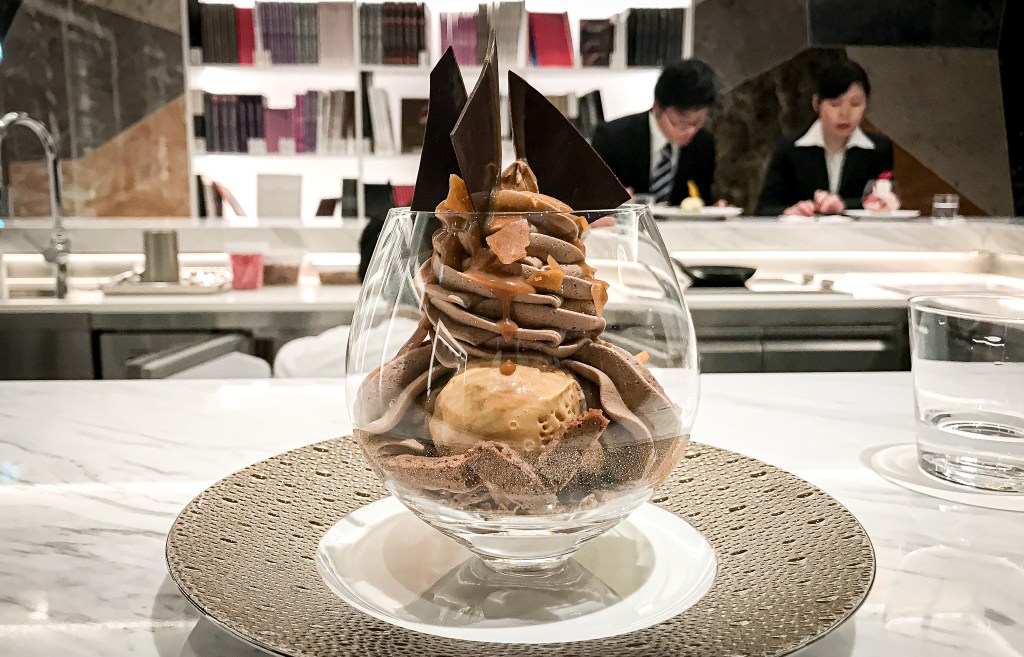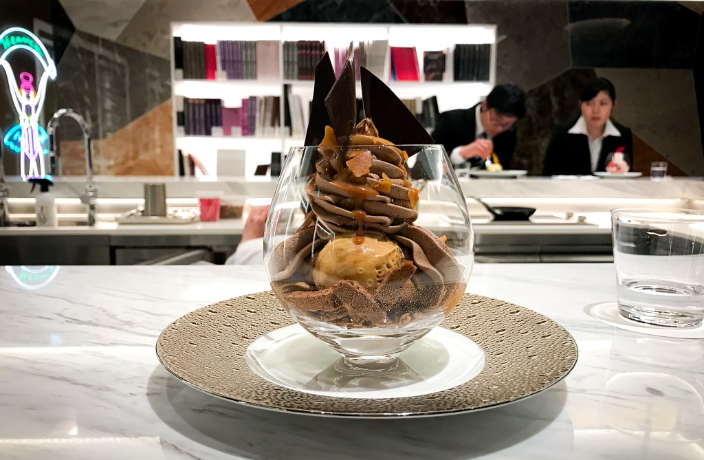 於是我就坐上吧檯,當然要品味一下線點現做的盤勢甜點。餐廳依然一樣是以蘋果平板點餐,我就陸續點了兩道甜點來享用,作為旅行的最後一站。