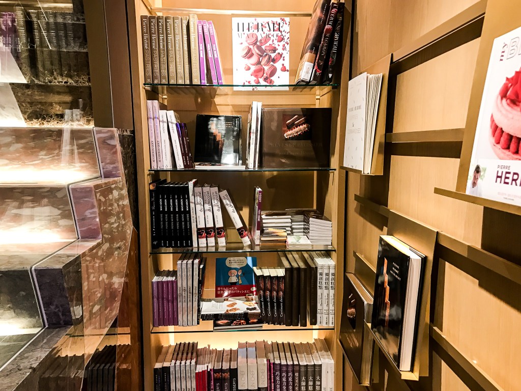 我的心裡一high,馬上往走二樓,想看看二樓成什麼樣子,我就在上二樓的樓梯間時看到了這裡展示了所有有關Pierre Hermè的書籍作品。