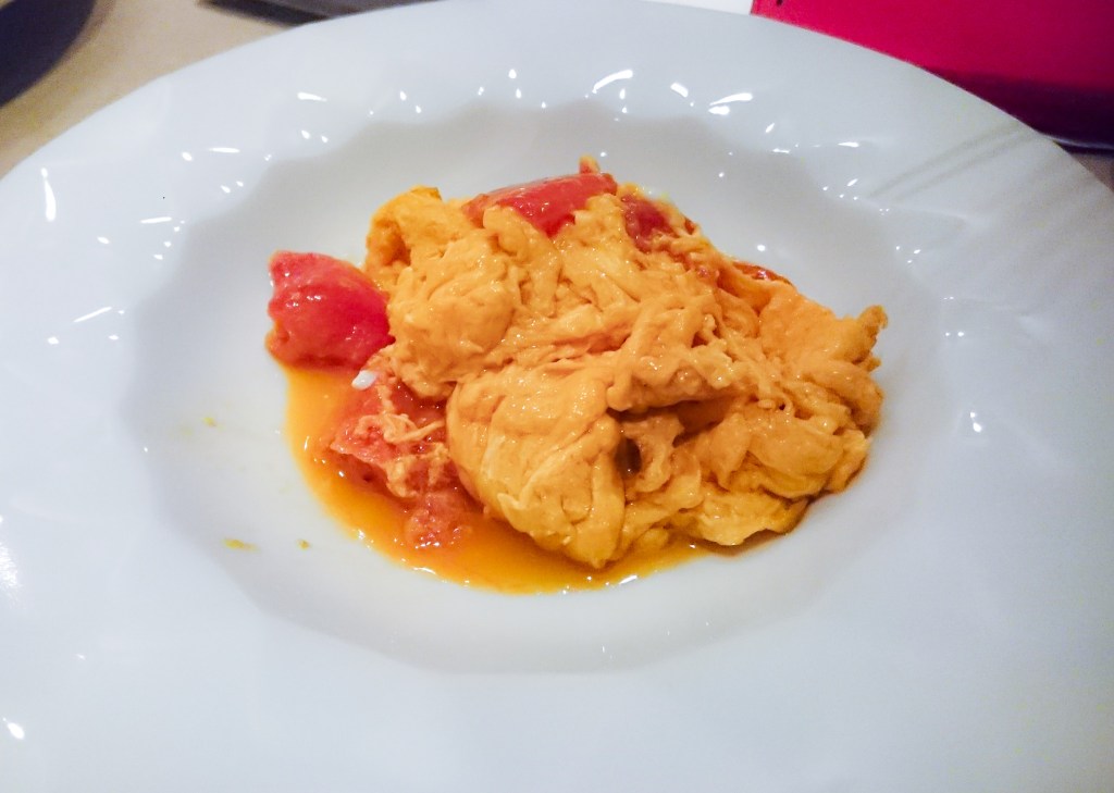 特別介紹主廚應變主菜「番茄炒蛋」,這是因為姑姑吃素的緣故,主廚改去原本的豬肉,而以一道番茄炒蛋現身,這也挺有意思的,因為我發現電影《幸福的馨香》裡最後令人感動的菜餚就是「番茄炒蛋」,也因為花捲小饅頭番茄炒蛋也可以做為夾心,或許是主廚的用意之一。