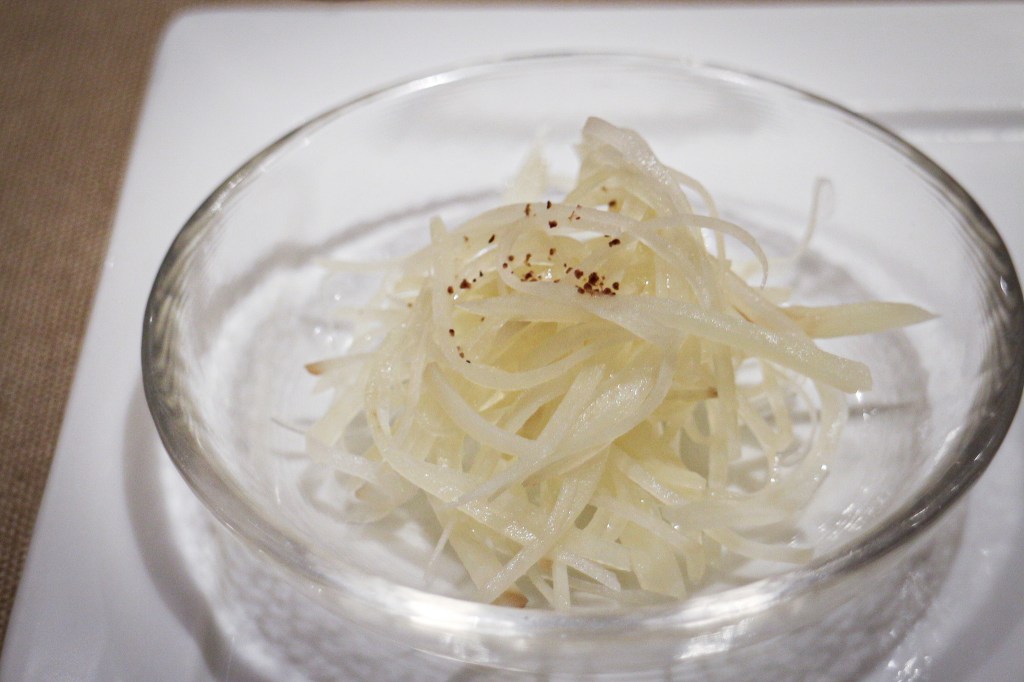 而「馬玲薯絲」,我夾起吃下,原以為是炸菜,到了尾韻方有馬玲薯的滋味,挺有風格的。