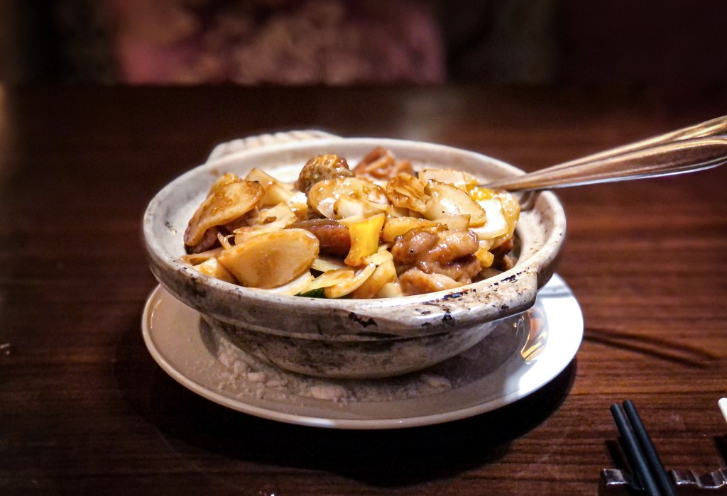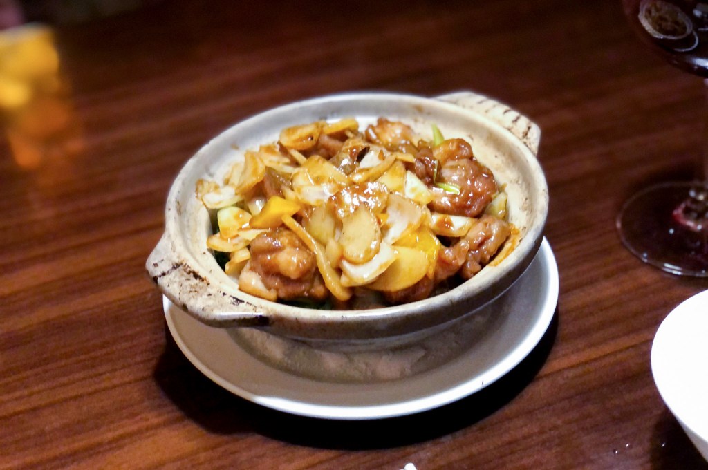 等了個許久後,第一道菜餚終於來了,誒誒…我以為是點心會先來…竟然第一道先上的是「寧波花雕雞球煲」(Braised Chicken and Rice Cake with “Hua-Diao Wine”in Clay Pot)。
